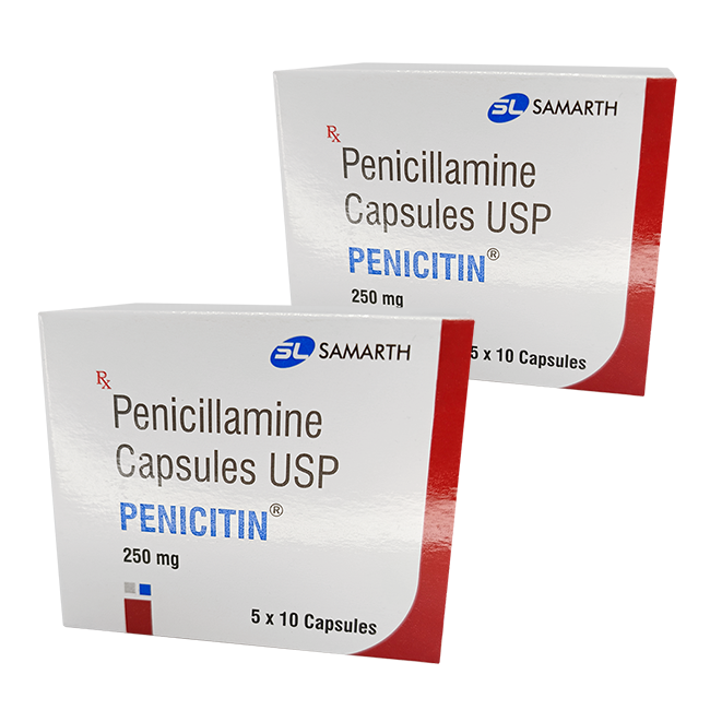 Хелатирующее действие: связываясь с ионами меди, Пеницилламин формирует растворимые комплексы, которые выводятся преимущественно с мочой.