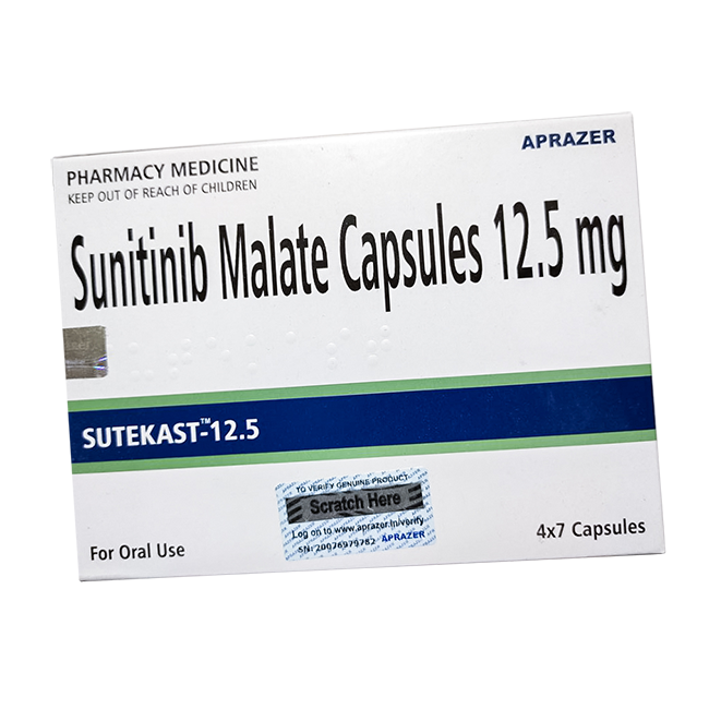 Поможем Вам в бронировании в аптеке Сунитиниб :: Сутекаст (Sutekast) :: аналог Сутент капсулы 12,5мг №28 в Москве, Санкт-Петербурге, Белгороде, Екатеринбурге, Казани, Красноярске, Новосибирске, Омске, Самаре, Тюмени, Уфе. Для заказа лекарств в других регионах оставляйте заявку, мы в индивидуальном порядке решим Ваш вопрос.